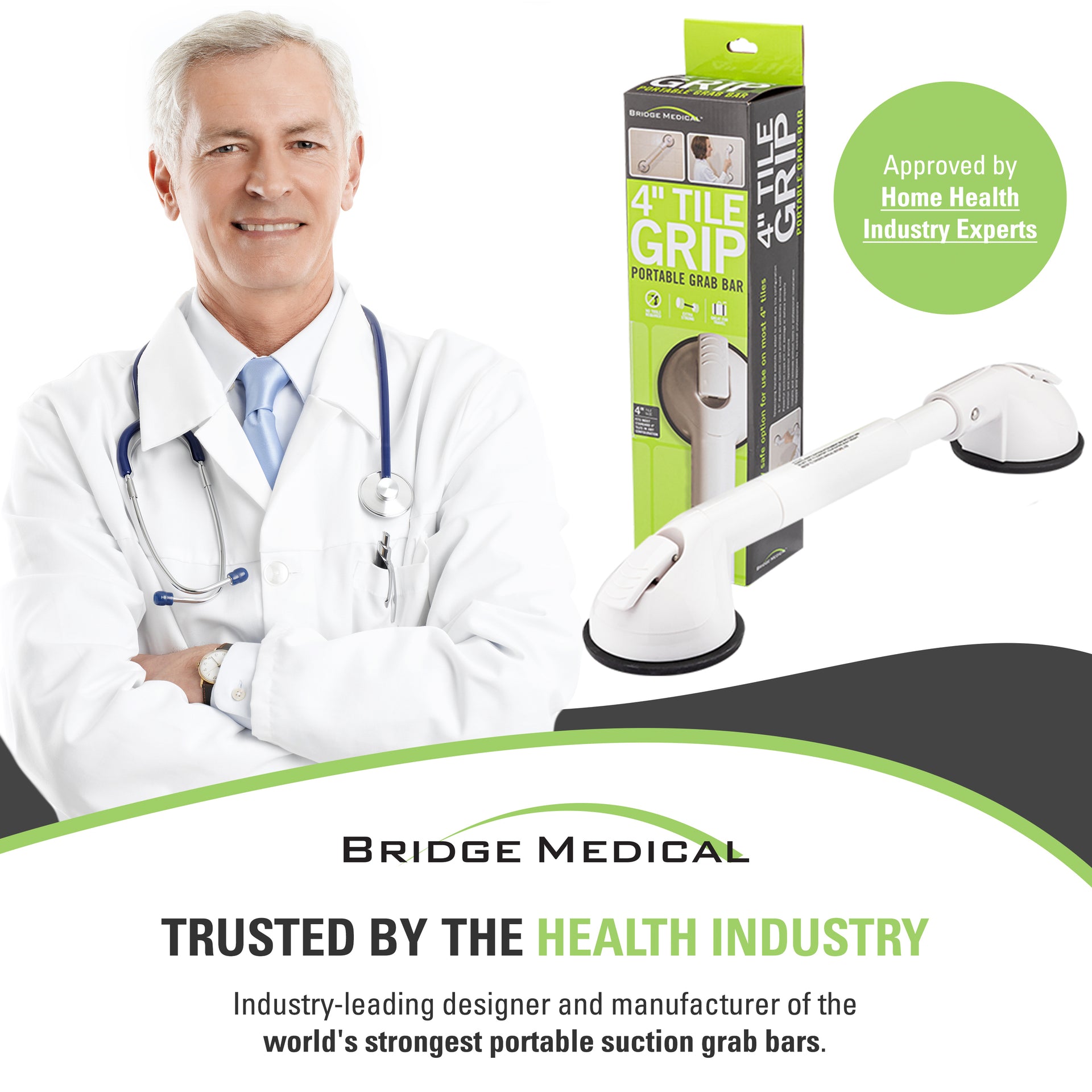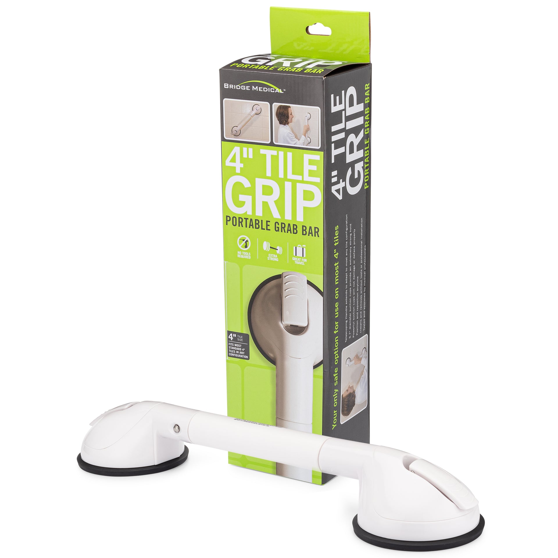 The 4” Tile Grip from Bridge Medical easily installs and removes without any tools or professional installation. It is the strongest and most reliable on the market today.